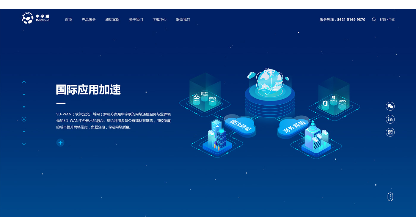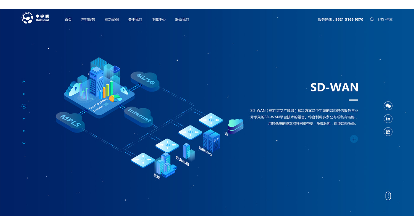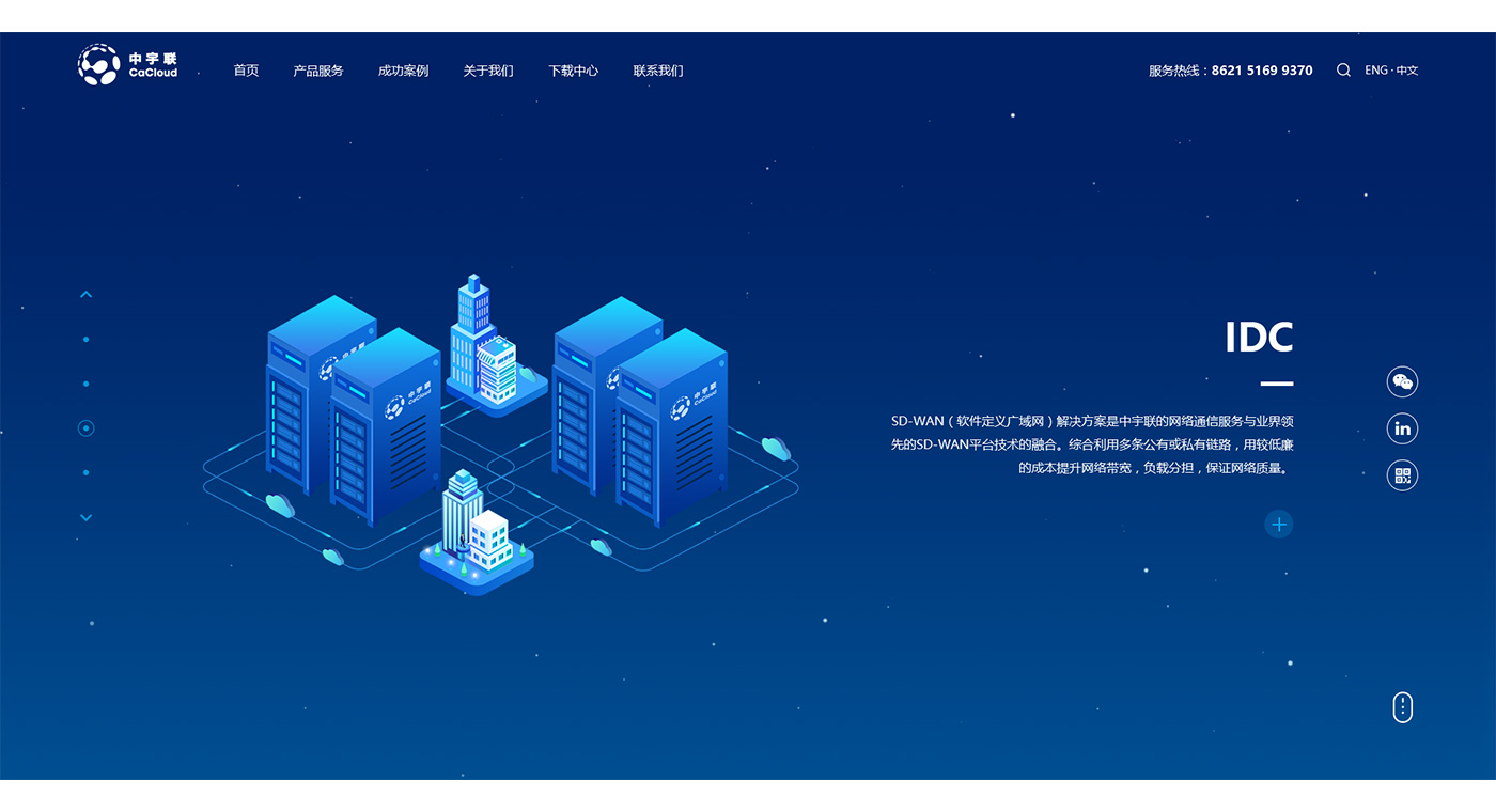 體現(xiàn)互聯(lián)網(wǎng)科技,網(wǎng)站整體以藍色為主色調,通過抽象2D場景來體現(xiàn)公司業(yè)務特點。