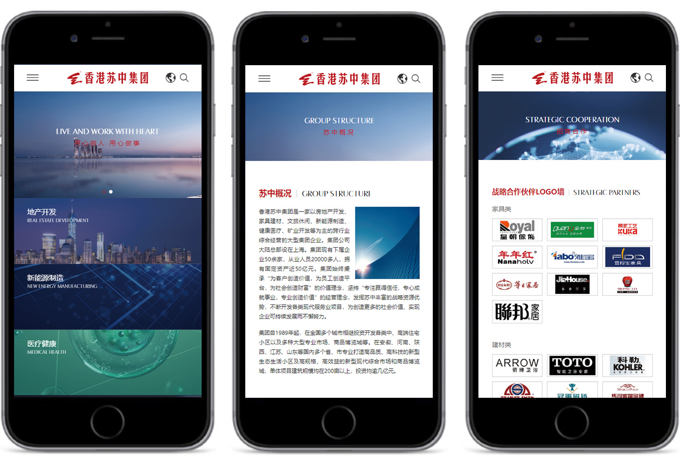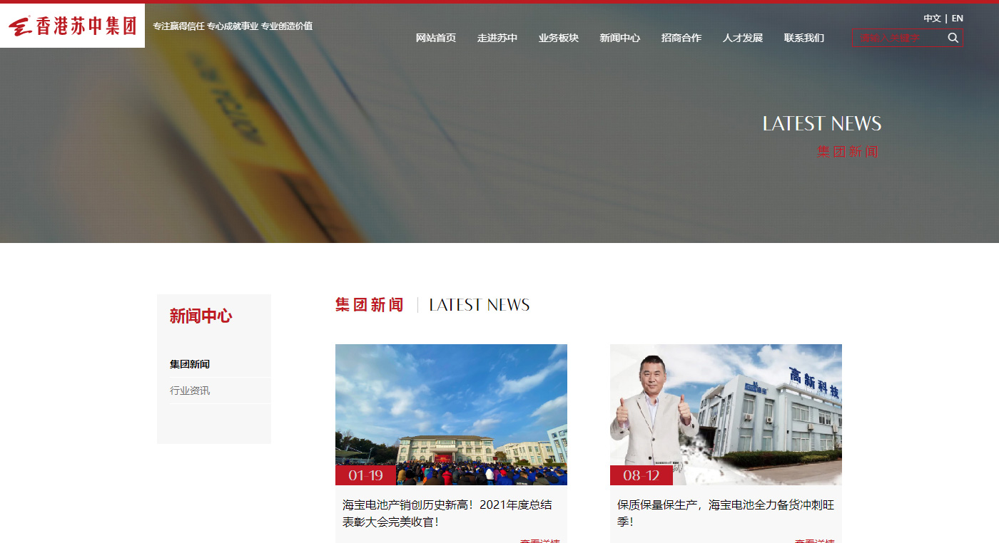 蘇中集團官網改版,符合國內用戶群體瀏覽習慣。 網站整體嚴謹和品牌色調體現出蘇中安全可靠,更具集團特色。