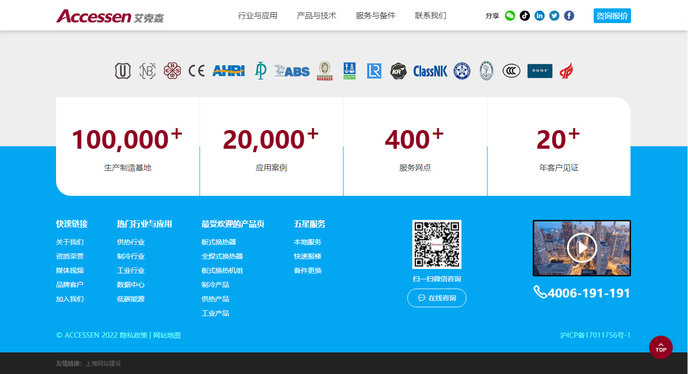 上海艾克森集團有限公司是專業從事換熱設備研發、制造、銷售及服務的換熱解決方案提供商,生產包括換熱器、板式換熱器、熱交換器、換熱站、換熱設備、板式換熱機組、全焊式換熱器、換熱機組、熱交換機組、脫硫系統換熱器、脫硝系統換熱器、制冷換熱器、空預器應用、生活熱水系統改造、工藝水冷卻系統、余熱回收系統改造在內的全系列節能換熱設備,同時也提供符合ASME、CE、API、JIS、IEC、DNV、GL、ABS、BV、CCS、GB等國際規范和標準的產品。